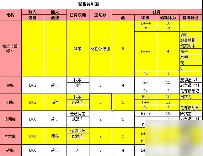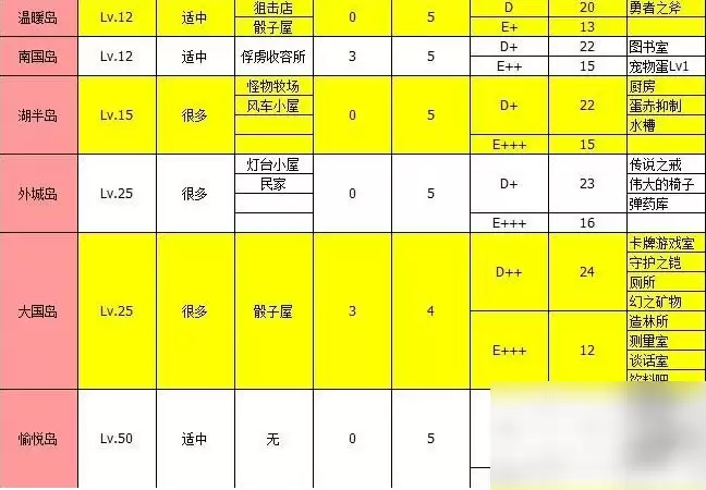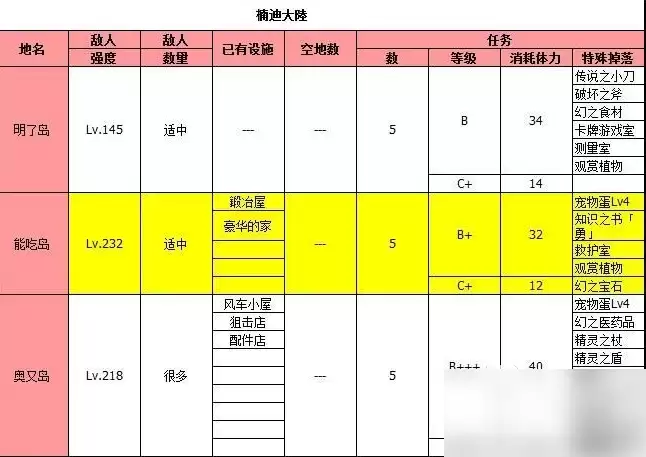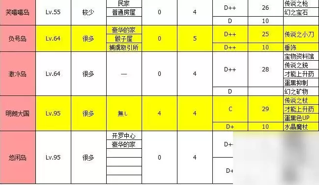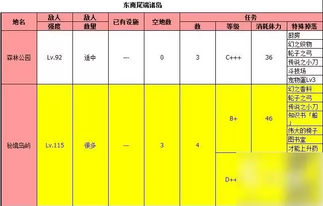 需要注意的是,这两个岛屿前期难度较高,建议至少达到300级船团实力再去挑战,否则很容易徒劳无功。另外值得一提的是,开罗岛产出才能上升药的几率相对较高,虽然这个道具不算特别稀有,但在商店也需要花费20个奖牌才能兑换。后期可以用它来给一些属性一般的伙伴或是主角升满星,尝试不同的科研阵容搭配也颇有乐趣。整个大海贼地带和开罗岛还有机会掉落毕业武器——传说小刀,非常值得反复刷取。其他前期物品的掉落详情,大家可以参考图中的表格信息。