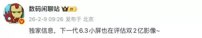 除此之外,最新的爆料还显示,“下一代6.3小屏也在评估双2亿影像”。