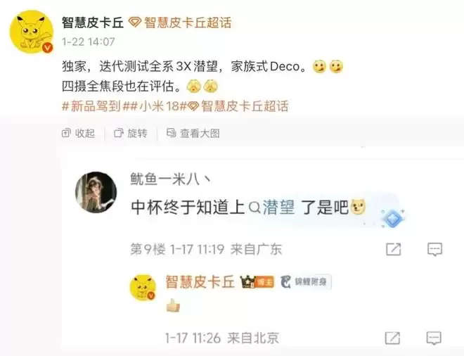 结合爆料所带的话题标签来看,其指的有可能是小米18系列。也就是说,标准版本小米18将搭载潜望长焦。