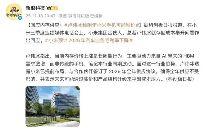 对此,卢伟冰去年就提到过,内存价格上涨是长周期行为,小米已提前布局,与合作伙伴签订了 2026 年全年供应协议,确保全年供应不受影响,并表示未来可能通过涨价和产品结构升级来平滑成本压力。