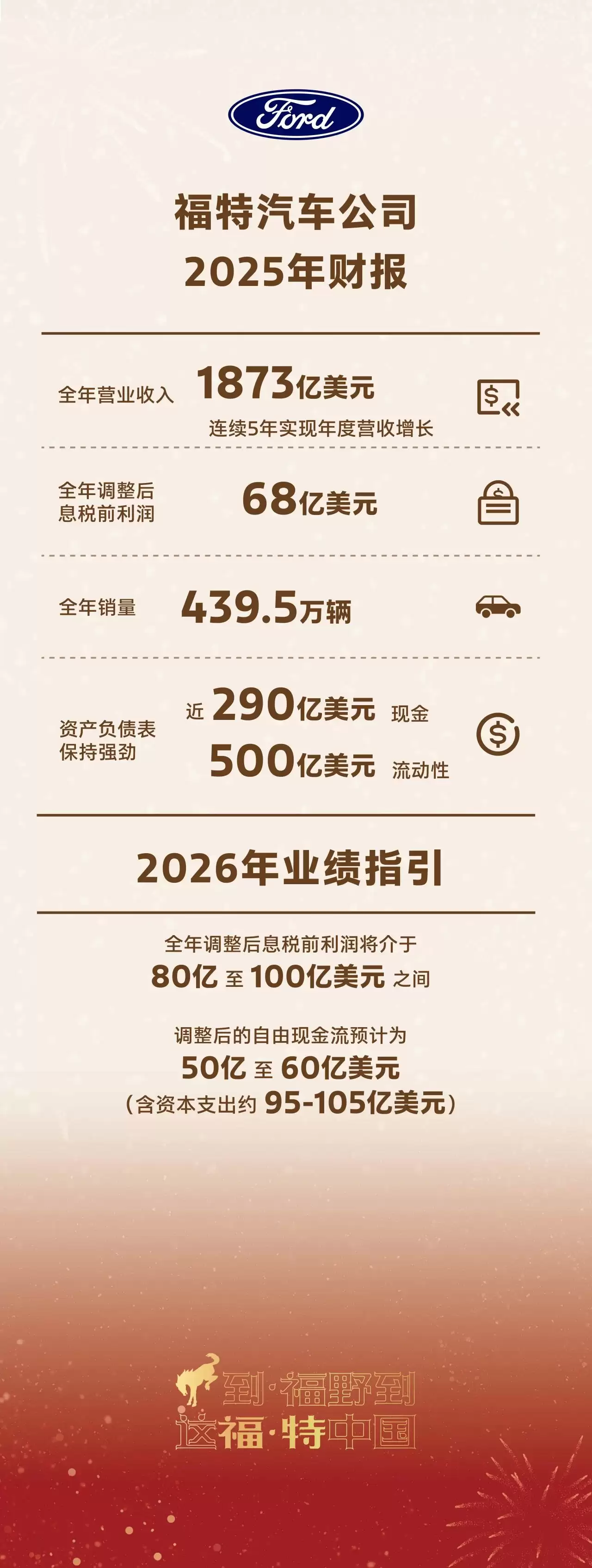 福特2025财报:1873亿营收亮眼,2026年利润预期再攀升