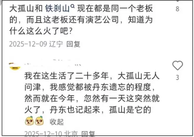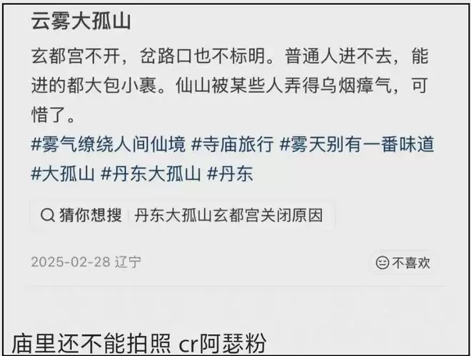 更微妙的是,网友发现明星去的大孤山好像和普通人去的大孤山不一样,他们去的地方,并不对外开放,一般人好像都进不去的。