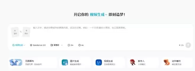 Seedance2.0支持文本/图片生成视频,也支持视频和音频作为参考素材输入。简而言之,你能想到的输入方式,它大多支持。目前,新用户首次登录即梦正式可免费体验2次,一次能生成4-15秒的视频,后续需要成为会员可继续使用。