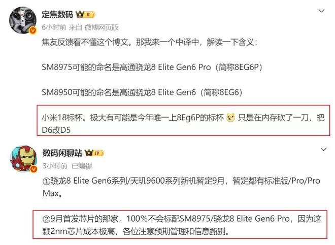 有博主称小米18标准版将是今年唯一使用骁龙8 Elite Gen6 Pro的标杯机型,只是内存从LPDDR6砍到了LPDDR5。