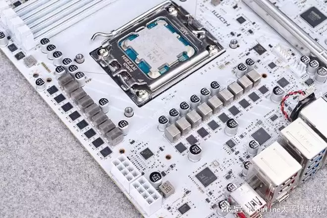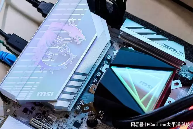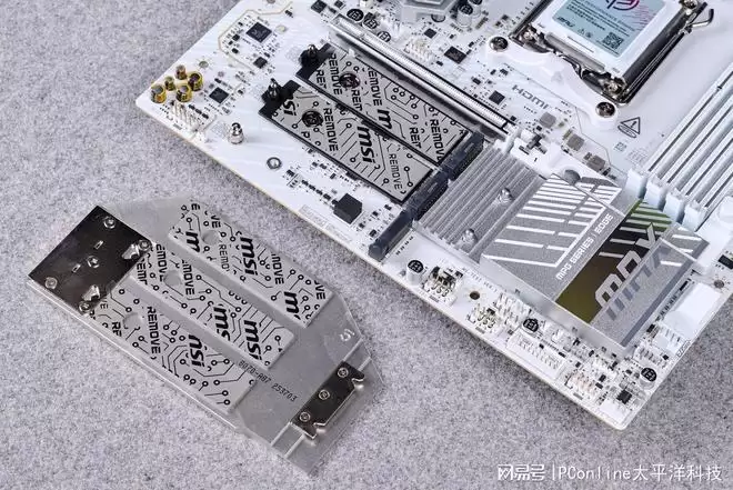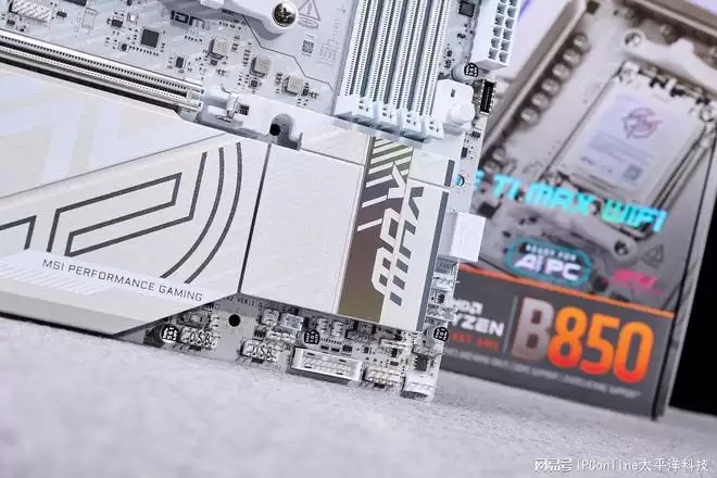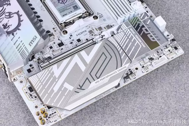 值得一提的是,微星在细节上的打磨也愈发成熟。PCB板同样采用了纯白色的基底,通过高密度的银色装甲覆盖,视觉一体感极强。