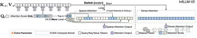 InfLLM v2可按需选择关键KV,让每个Query只计算必要部分,从而大幅提高长文本处理效率。