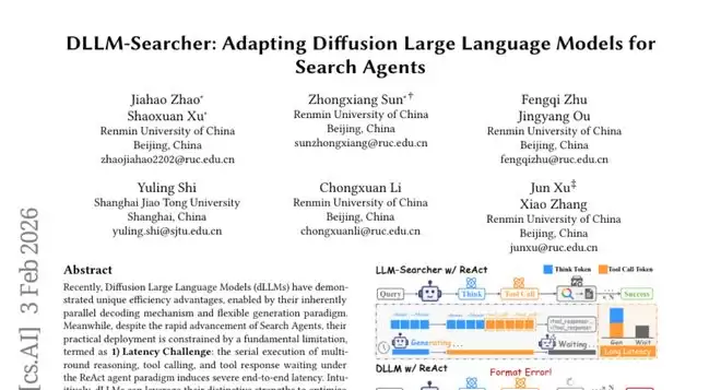 然而,中国人民大学的研究团队发现了一个更聪明的方法。他们开发了一种名为DLLM-Searcher的新型AI搜索系统,就像让厨师学会了同时处理多个任务——一边切菜一边热锅,在等水开的时候准备调料。这种"边思考边搜索"的能力让整个问答过程提速了约15%,而且回答质量丝毫不减。