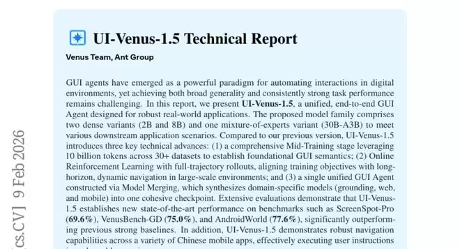 蚂蚁集团UI-Venus 1.5发布:跨端自动操作指南更新