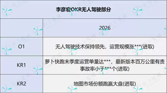 2025年一季度,李彦宏OKR包括4个目标与11个关键结果中,进取型仅为3个,使得去年百度业务策略上呈现出较保守的风格。一年之后,李彦宏的4个目标与12个关键结果中,进取型占到了8个。其中移动生态占到2个、智能云+硬件业务占到3个,自动驾驶3个。