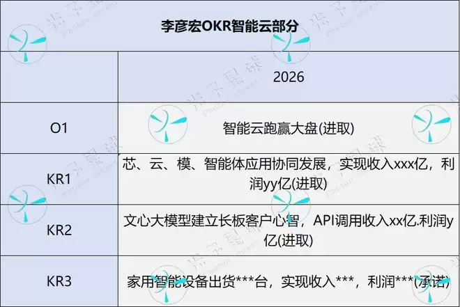李彦宏对智能云部分的O1和KR1都发生了明显的变化。