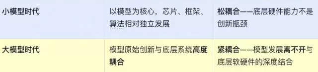 现阶段很多模型的发展是离不开和底层软硬件系统深度的结合。底层变得「更重」,对集群和框架的技术要求发生质变。