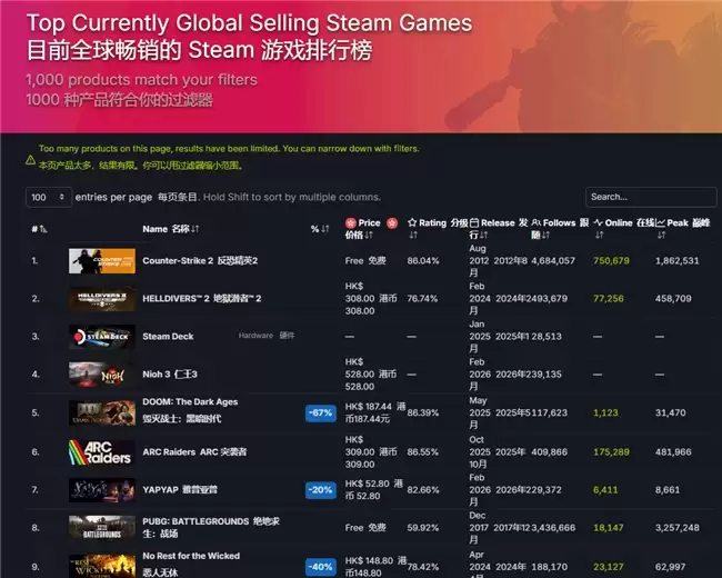 除了直观的价格优势,选择此时入坑更是一次内容与优惠的双重丰收,即刻便能体验到前面更新带来的全部内容。在更新当天,《绝地潜兵2》就已经登顶Steam销量榜,而在游戏内,在线的玩家数量也始终保持着近8万的高位,其内容吸引力可见一斑。