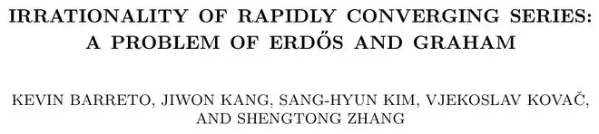 Irrationality of rapidly converging series: a problem of Erdős and Graham」中报告的推广性成果。