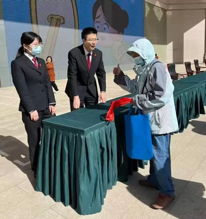 郑吉喆法官在做普法宣传。 受访者供图