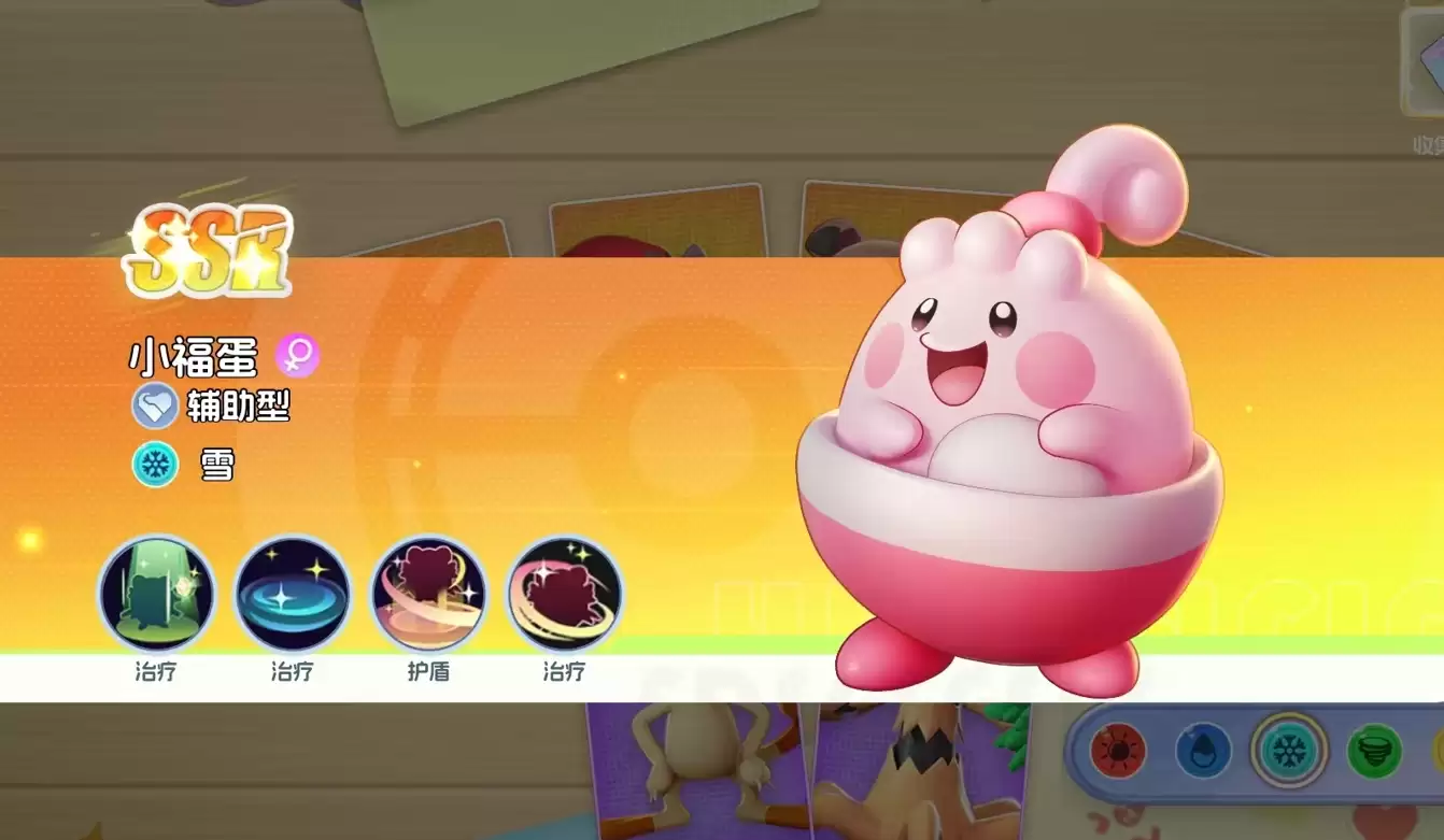 这是一只能够通过普攻和技能为队友回复血量的宝可梦,其治疗能力极为出色。仅凭它一只宝可梦,就能让队伍获得相当不错的持续作战能力。最重要的是,当小福蛋成功升至41级后,还会解锁新技能,释放时能为全体友方宝可梦增加基于自身攻击力的护盾,为队友带来更优越的生存保障。