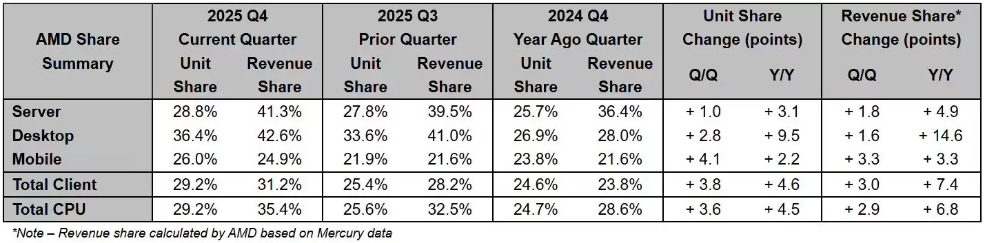 2025年第四季度全球CPU市场:AMD出货量与份额创历史新高