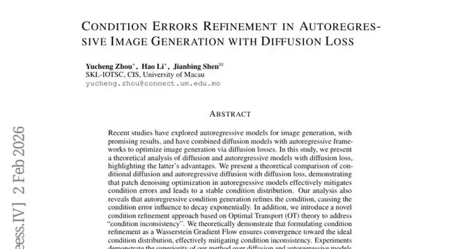 这项由澳门大学SKL-IOTSC实验室领导的研究发表于2026年的国际学习表征会议(ICLR),论文编号为arXiv:2602.07022v1。研究团队深入探索了自回归图像生成中的条件错误优化问题,并提出了基于最优传输理论的全新解决方案。