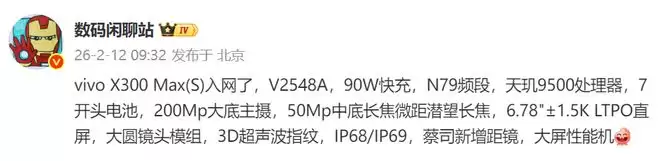 直到近期,笔者发现vivo X300 Max突然入网了,且有博主针对新机本身进行了十分详细的配置规格泄露,感觉期待值真的很高。