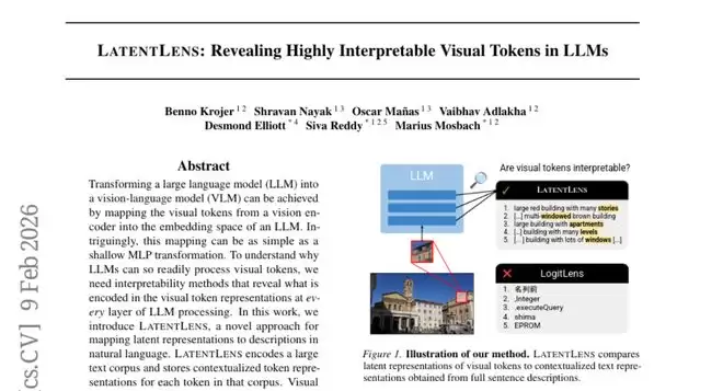 在人工智能的发展历程中,让机器既能理解语言又能看懂图像一直是科学家们追求的圣杯。最近,来自蒙特利尔大学Mila人工智能研究院、麦吉尔大学以及哥本哈根大学的联合研究团队在这个领域取得了重要突破。这项研究成果以论文《LATENTLENS: Revealing Highly Interpretable Visual Tokens in LLMs》的形式发表,感兴趣的读者可以通过arXiv编号2602.00462查询完整论文。