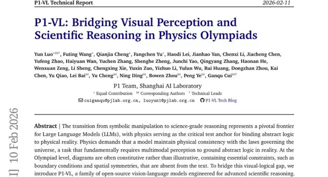 这项由上海AI实验室领导的突破性研究发表于2026年2月,论文编号为arXiv:2602.09443v1。研究团队开发出了名为P1-VL的视觉语言模型家族,这是首个能够真正"看懂"物理图像并进行科学推理的开源AI系统。