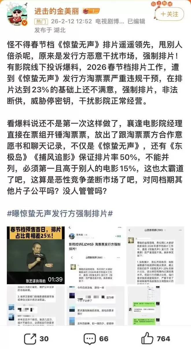 2026年的春节档,本该是《惊蛰无声》用光影惊动市场的时刻,没想到先被惊动、并且响声震天的,是来自山西数百家影院的联名控诉。