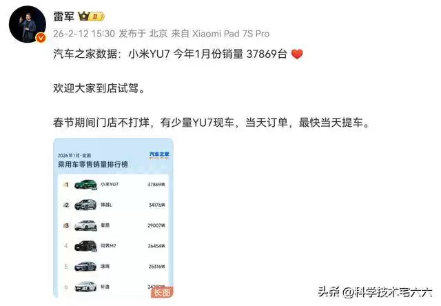 小米汽车再次传来捷报,旗下新星YU7在一月份创下了37,869辆的销售佳绩,成功登顶国内SUV月度销量榜首。这一成绩不仅超越了途观L、星越L等传统畅销车型,更是以近乎两倍于特斯拉Model Y的销量表现,引发了行业的广泛关注。值得注意的是,YU7的起售价已超过25万元,在销量前十的车型中,其价格仅次于问界M7(27.98万元起),展现出在中高端市场强劲的竞争力。