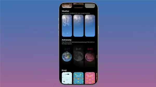 锁屏自定义界面迎来调整:原本与天文壁纸合并陈列的天气壁纸现已拆分为独立板块,命名为"天气壁纸专区"。系统新增三款预设动态壁纸,可根据不同时段自动切换字体样式并搭配天气小组件,进一步提升锁屏界面的信息呈现与视觉个性化空间。