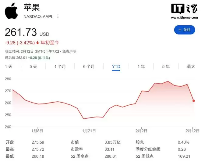 受此消息影响,苹果公司股价周四下跌5%,抹去了全年涨幅,2026年累计下跌近4%。