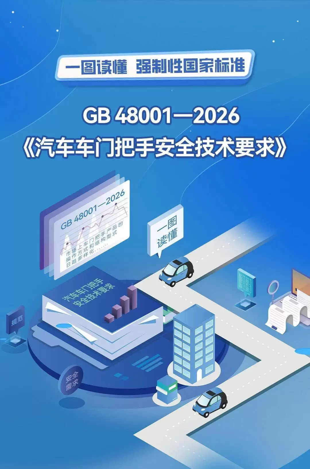 2026年初,我国正式发布《汽车车门把手安全技术要求》(GB 48001-2026),明确将于2027年起实施。该标准直指行业痛点:当智能交互、隐藏式设计等创新趋势与基础安全需求产生冲突时,如何确保极端情况下车门仍能被无条件开启?监管部门通过制度化手段,为技术演进划定了安全红线。