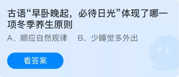 古语"早卧晚起,必待日光"体现了哪一项冬季养生原则?支付宝小鸡课堂开课啦!每天花一分钟答题赚饲料,喂喂小鸡就能贡献爱心啦!轻松又意义十足!2026年2月13日蚂蚁庄园的题目正确答案是【顺应自然规律】,"早卧晚起,必待日光"出自《黄帝内经》,核心是倡导冬季作息应顺应日出日落的自然节奏,而非"少睡觉多外出"。