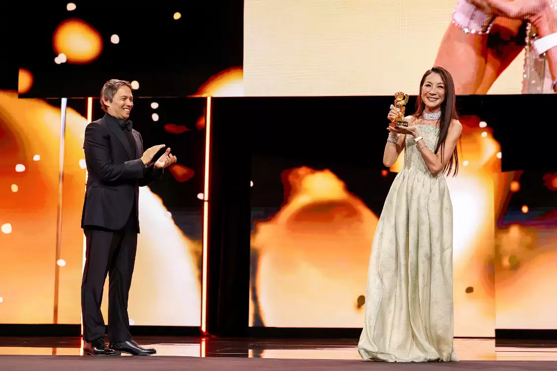 杨紫琼还表示柏林电影节给了她归属感,“当我还在寻找自己属于何处,柏林欢迎了我。”她还回顾了从马来西亚槟城女孩到国际影星的旅程,“我这一路跨越了语言和文化、各大洲和各类型,有时优雅,有时带着一点疼痛,但指引着我的,一直是好奇心和对电影的深深信赖。电影成为了一个让我可以保有矛盾、力量、脆弱、严肃,可以扮演控制和服从的地方。它不仅给了我一个职业生涯,也给了我从不敢想象的宏大人人生。”