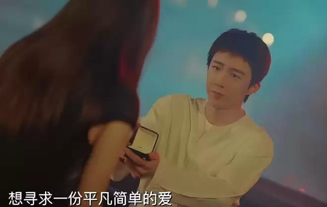 刘宇宁这次的短发造型清爽利落,向女主求婚时捧出戒指,眼神充满期待,但小心翼翼的动作又流露着紧张,将小贝行动胜过言语的一面展现的淋漓尽致。