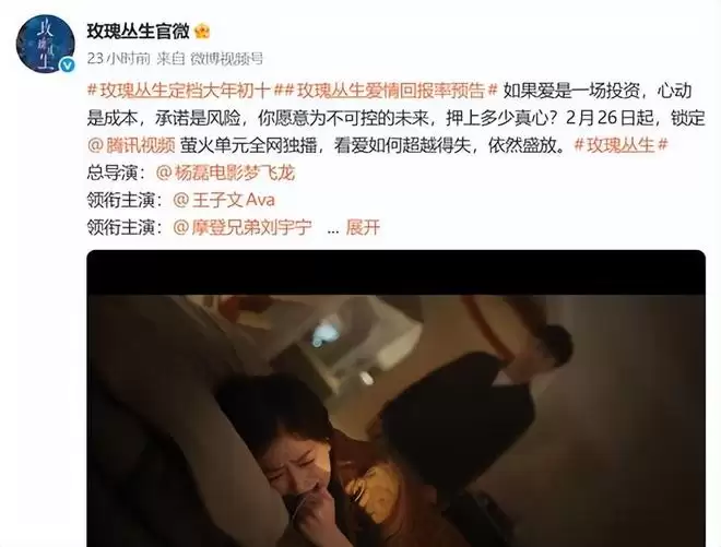 《玫瑰丛生》官宣定档大年初十(2月26日),将在鹅厂上线。