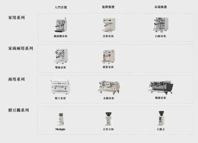 家用意式咖啡机产品系列中,入门级“猫头鹰家族”零售价2599元至3299元,定位半自动意式咖啡机入门级市场;中端“云象家族”4399元起,配置锅炉系统;高端“白鲸家族”7599元至10999元,主打高端家用市场。