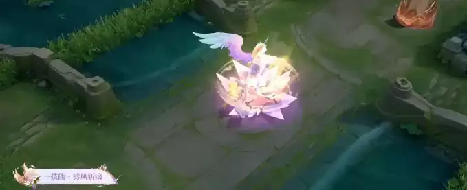 普通攻击挥洒出金色波纹,刃光掠过独角兽虚影与飘散的玫瑰花瓣;一技能位移路径留下水晶般的星尘足迹,落点处绽放独角兽图腾;二技能三段连击依次亮起霞光印记,末击触发羽翼光痕与金色翎羽;三技能开船时,独角兽踏霞光牵引水晶车驾飞驰,船身萦绕纱质披风与星屑流光,途经之处拖曳玫瑰藤蔓与渐变的晚霞轨迹。
