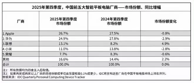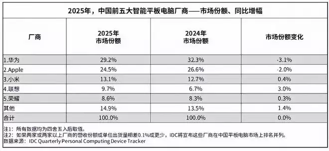 知名数据调研机构IDC最新发布的报告显示,2025年全年及第四季度中国平板电脑市场表现引人关注。数据显示,过去一年国内平板电脑出货量达到3376万台,同比增长13.1%,整体市场表现可圈可点。