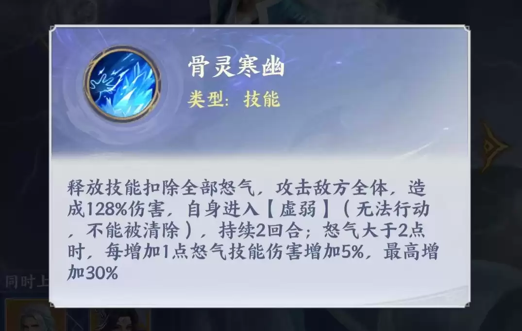 药老属于物理群攻型主C,不设普通攻击,每次行动必释放技能“骨灵寒幽”。该技能需消耗全部怒气值,对敌方全体造成高额伤害;若怒气值超过2点,伤害随怒气总量线性提升。技能释放后,自身将进入持续两回合的虚弱状态。升星后解锁进阶效果:若技能击毙敌方单位,则虚弱时长减少1回合;同时对生命值高于80%的目标额外提升伤害。在羁绊协同方面,与玄衣共同上阵可使药老攻击力提升15%,显著强化其爆发稳定性。