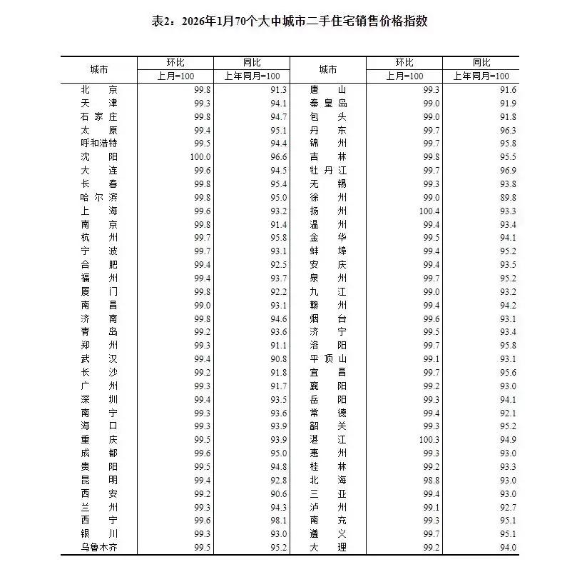 上海1月新建商品住宅价格环比持平,扭转了上月0.2%的上涨态势;同比上涨4.2%,涨幅较上月的4.8%有所回落。二手房价格环比下降0.4%,较上月0.6%的降幅有所收窄;同比下跌6.8%,较上月6.1%的降幅进一步扩大。