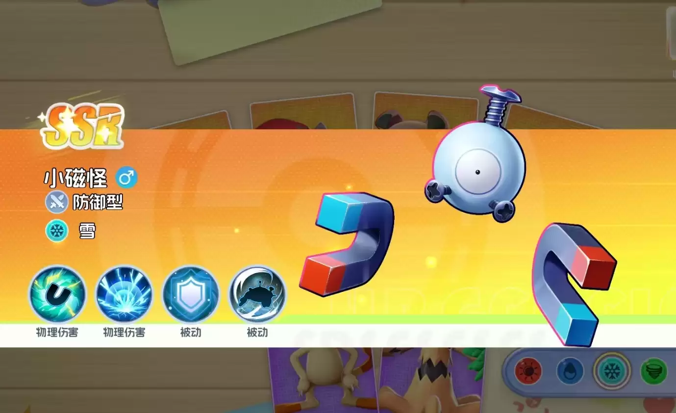 与炭小侍一样都是控场能力很出色的宝可梦,它可通过释放电磁场,让电磁场内的友军享受到法术伤害减免25%的效果,还能持续对范围内的敌人施加麻痹,叠满5层时敌人会陷入无法动弹的负面效果。同时,作为防御型宝可梦,小磁怪在受到攻击时,还有20%的概率格挡本次攻击20%的伤害。