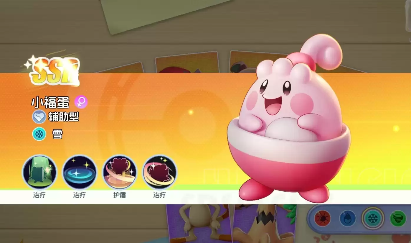 强大的治疗能力是小福蛋的特色,能极大地保障队伍的生存。它的大招除了能快速拉高己方低血宝可梦的生命外,还可让该宝可梦回复怒气,即便刚用完大招也能在短时间内再次开启。41级后更可对己方全体宝可梦施加护盾,进一步保障它们的生存,护盾还能提升宝可梦们10%的攻防。