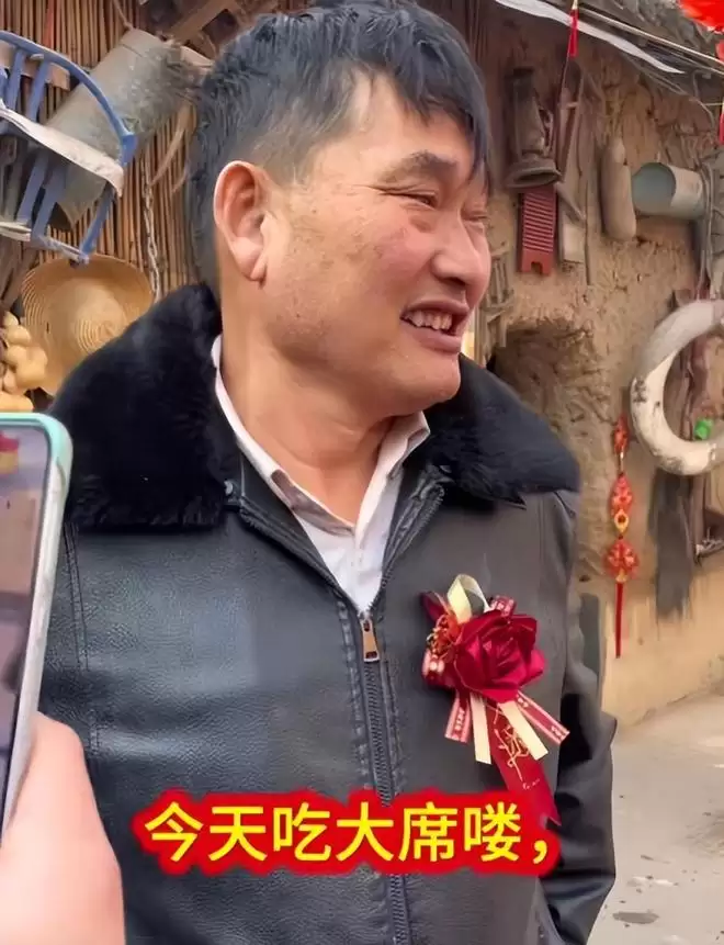 村民们拿着手机记录下幸福时刻,大衣哥请大家吃大席,整个婚礼的现场没有所谓的奢华无比,朴实又幸福,农村婚礼本就这样子,大衣哥和新郎家开心幸福就好。