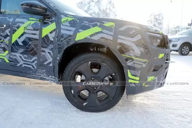 外观方面,测试车辆采用了带有Jeep品牌标识的全车伪装涂层。透过伪装缝隙可以观察到,其分体式LED大灯和散热进气口的位置与现款车型保持一致。