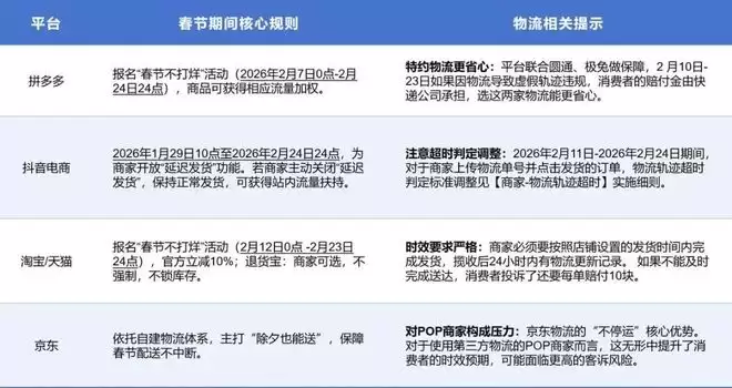 显而易见,对于当下的消费者而言,他们对电商的需求,已经从“买得到”,进化到了“买得快、买得好、服务有保障”,尤其春节期间,服务与体验,已经成为他们选择在哪儿、去哪儿购物的重要标准。