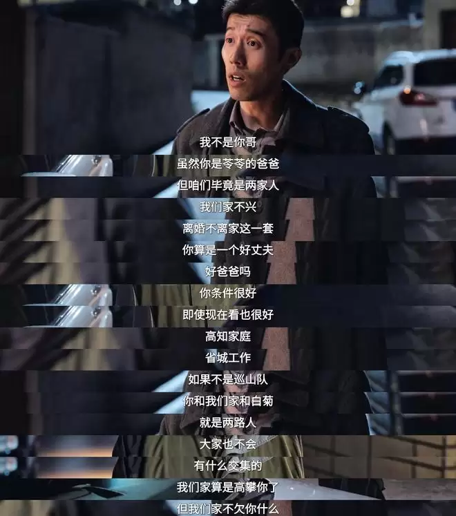 大哥白椿也认为,白菊提出离婚,是因为邵云飞整日忙于事业,不着家,苓苓生病时,白菊一个人孤独无助、忙前忙后,邵云飞不闻不问,时间久了,白菊对他绝望。