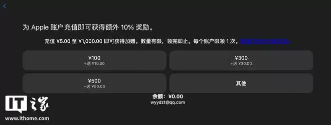 需要注意的是,每个 Apple ID 在活动期间仅可享受一次充值优惠,具体资格由系统根据账户信息及购买记录判定,最终需以活动条款为准。