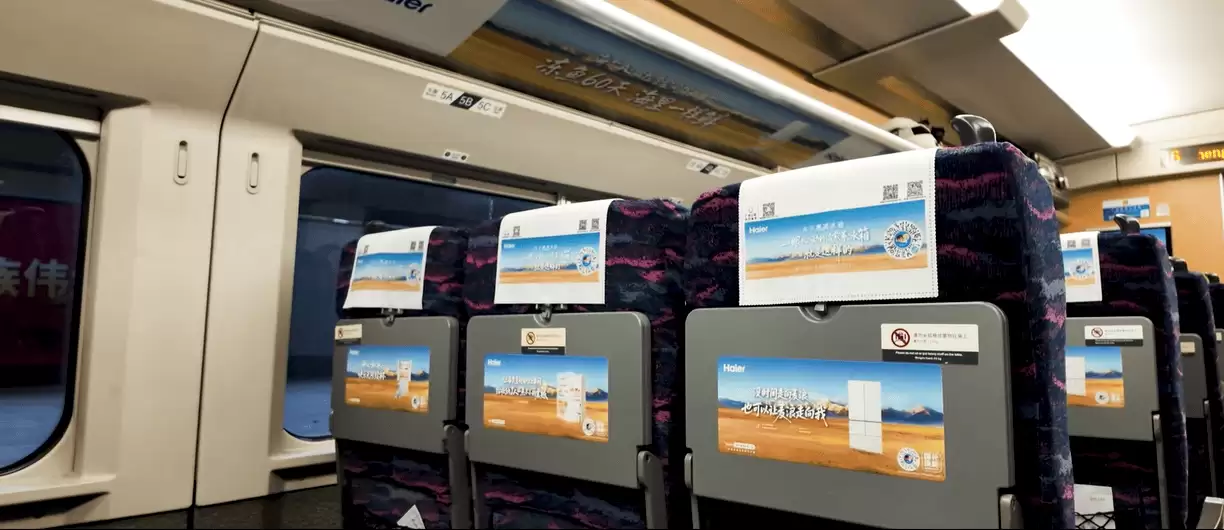 当旅客踏入车厢,一段崭新的沉浸式体验便随之展开。从车身的涂装到座椅的头枕,从车厢内的海报到桌面上的画面,“磁控全空间保鲜60天”、“一眼心动的海尔智家云溪冰箱”等核心信息映入眼帘,伴随着列车穿梭于上海、北京、广州、成都等全国63座城市,悄然融入亿万旅客的归途。这不仅仅是一列春运列车的冠名,更是一场可感知、可共鸣的科技体验,让人们在回乡路上提前感受到年味十足的智慧厨房场景。