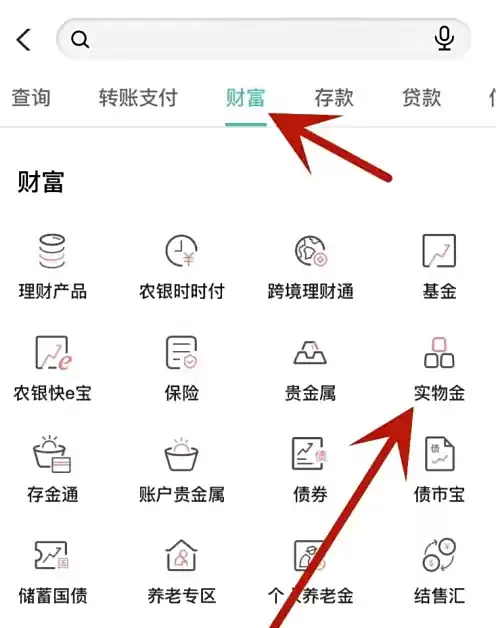 进入财富管理板块后,选择"实物贵金属"分类。