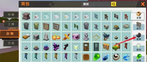 接着在杂物菜单中找到家具分类按钮,点击即可浏览当前拥有的所有家具。