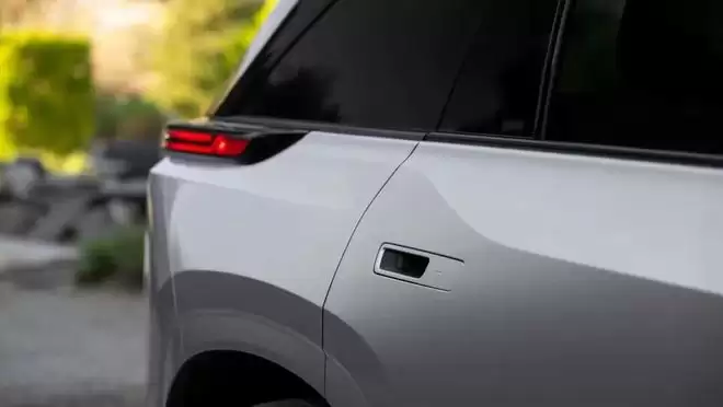 外观方面,全新丰田汉兰达纯电版延续了品牌最新的“锤头鲨”前脸设计语言,贯穿式前大灯搭配大面积封闭式梯形格栅,虽然整体呈现出鲜明的新能源风格,但在前脸下方依然保留了梯形的进气口轮廓。充电口被集成在车头右前方,以适应北美地区的用车习惯。最新信息显示,新车将标配NACS充电接口,能够适配特斯拉充电桩。