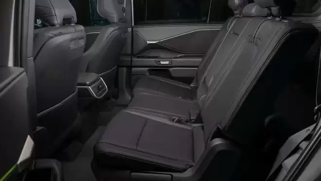 新车采用2+3+2的座椅布局,三排座椅均采用SofTex人造皮革作为标准材质,标配前排座椅加热功能,前排座椅通风和第二排座椅加热则为选装配置。此外新车也提供六座版本。当启用第三排座椅时,后备箱容积为15.9立方英尺(约0.45立方米),放倒后排座椅后容积可扩充至45.6立方英尺(约1.3立方米)。